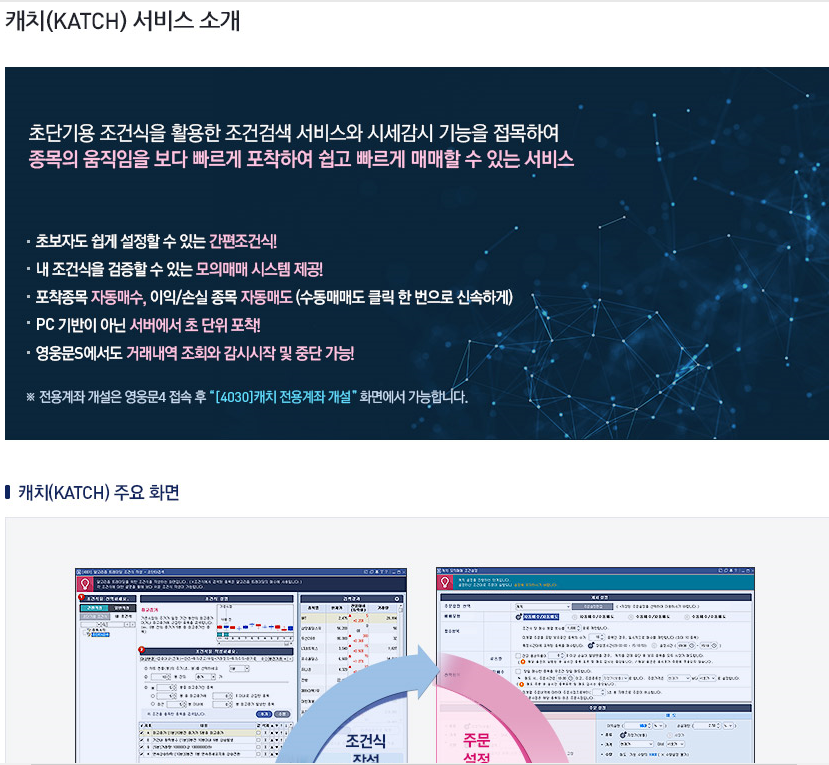 그러던 중 우연히 키움증권의 캐치(KATCH) 서비스를 알게 됐는데, "아!"